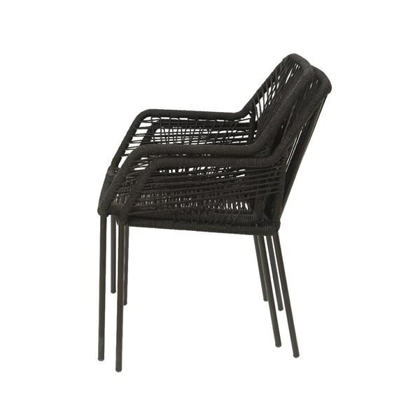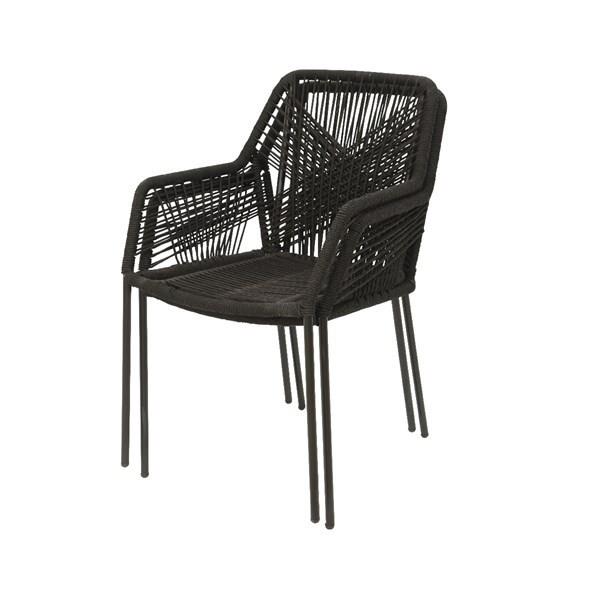 Καρέκλα πλεκτή με σχοινί ροπ σε μαύρο χρώμα.