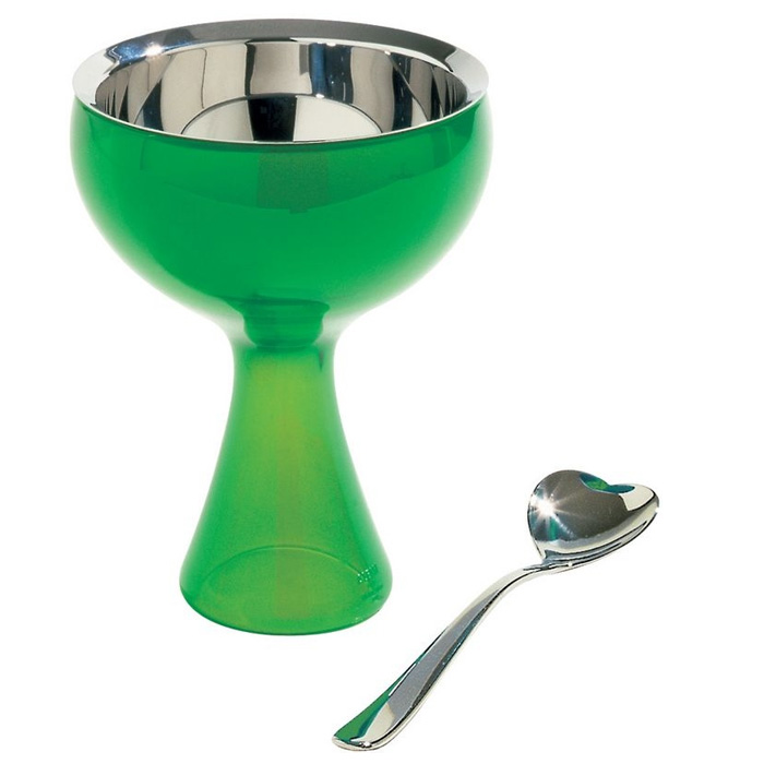 Μπωλ παγωτού Big Love inox πράσινο με κουταλάκι.