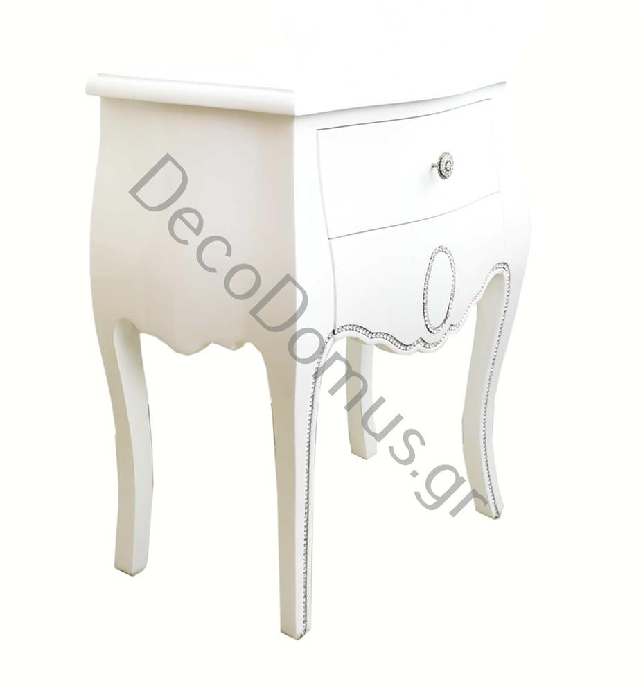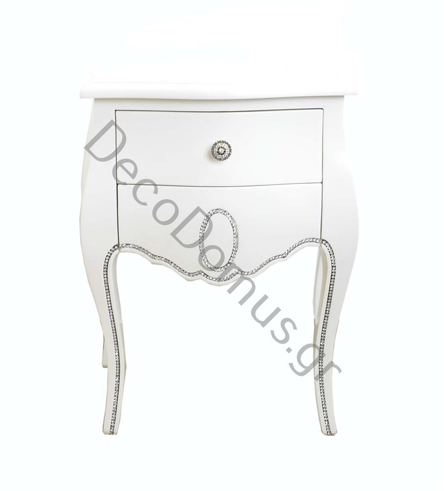 ΚΟΜΟΔΙΝΟ ΞΥΛΙΝΟ ΛΕΥΚΗ ΛΑΚΑ ΜΕ STRAS Ξύλο 54*36*69